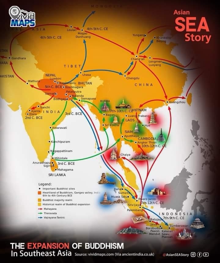 Kum zabi rukna AD khan Mahayana Buddhism chu Cambodia ramah a darh ta a. Ram nena sumdawnna kalpui thin sumdawngteโn an rawn luhtir a ni. Mahayana Buddhism hi kum zabi lina AD vel khan Thailand ramah a darh a, kum 50AD vel khan China ramah a darh bawk.